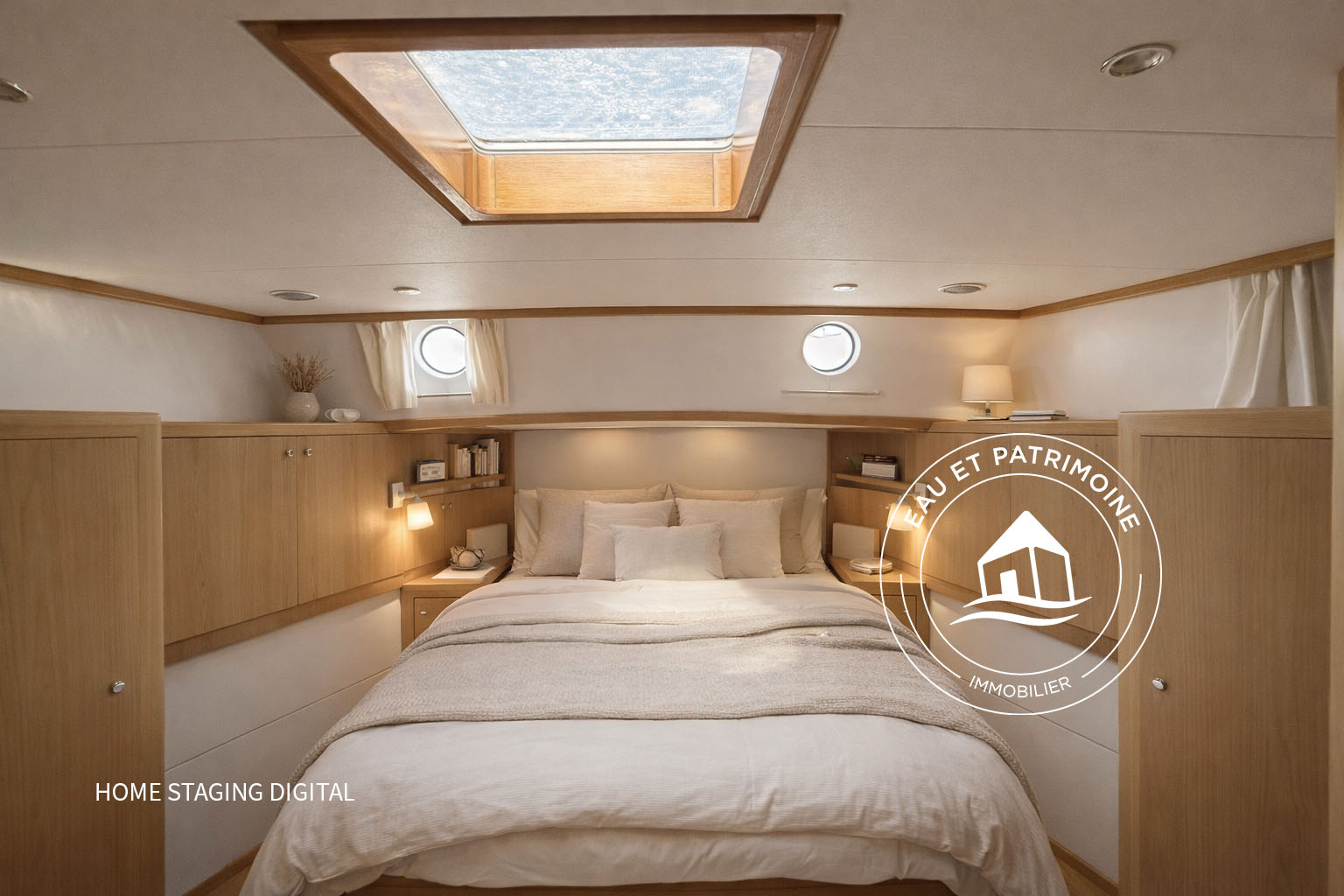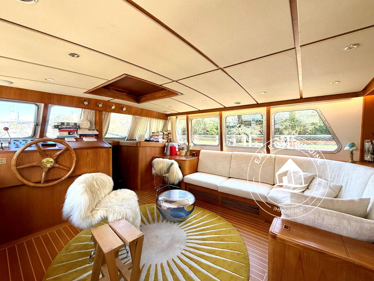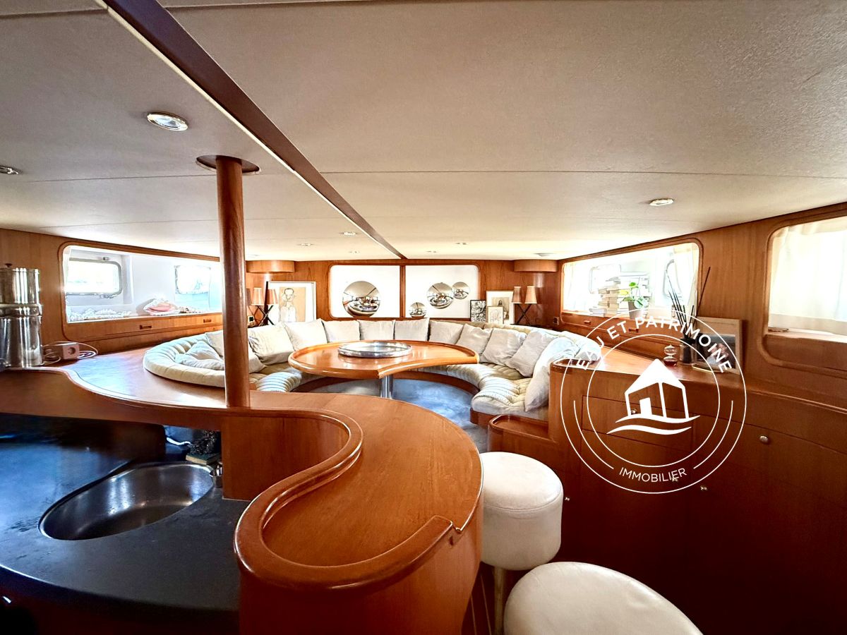 Cette vedette à vendre est idéale pour habiter compte tenu de son agencement et de ses volumes, mais aussi pour naviguer. Ce bateau habitable possède une très belle ligne en plus de l’agrément qu’il procure à l’intérieur.