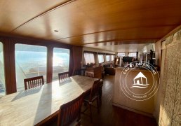 – Pont supérieur : Salon lumineux, vitré sur toute sa longueur, avec salle à manger et poêle à bois